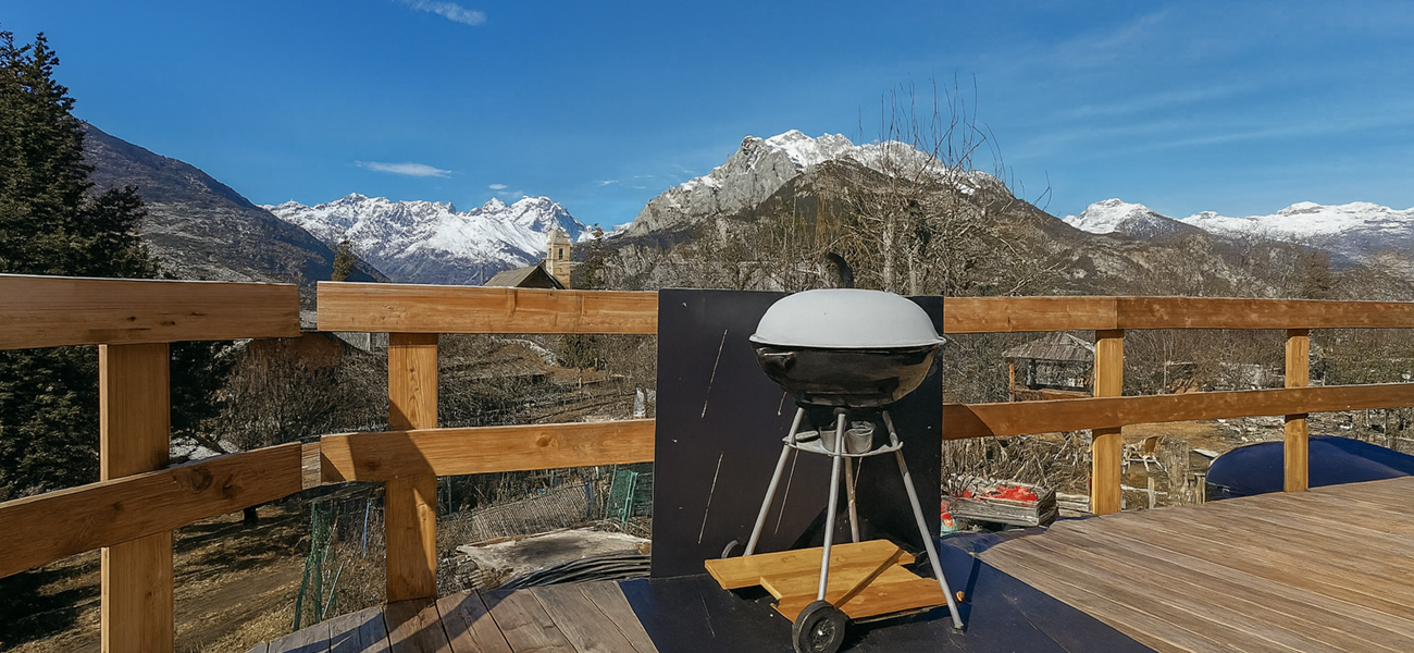 Notre gîte vous accueille dans un environnement calme et préservé, au fond d'une impasse, sans vis-à-vis, avec pour seul voisin… une fontaine d'eau de source au pied de la maison. Depuis la terrasse plein sud de 50 m², profitez d'une vue panoramique sur le glacier des Écrins culminant à plus de 4100 m. Le spectacle change chaque jour avec la lumière du ciel alpin.